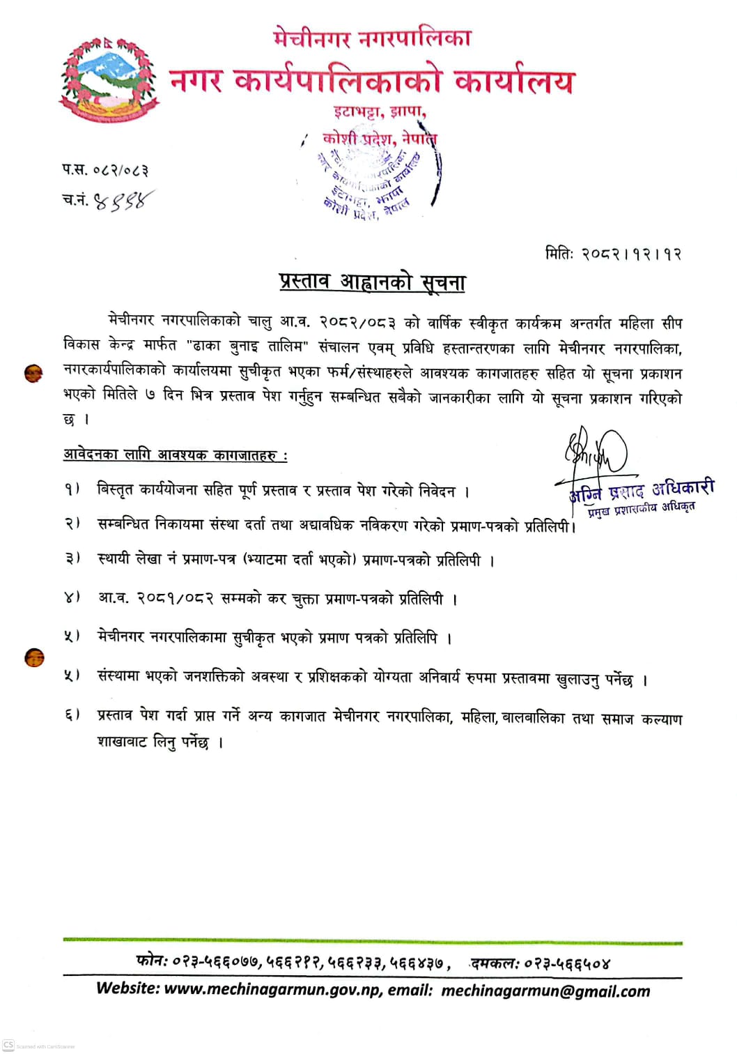 "ढाका बुनाइ तालिम" संचालनको लागि प्रस्ताव आव्हानको सूचना | मिति:२०८२/१२/१२