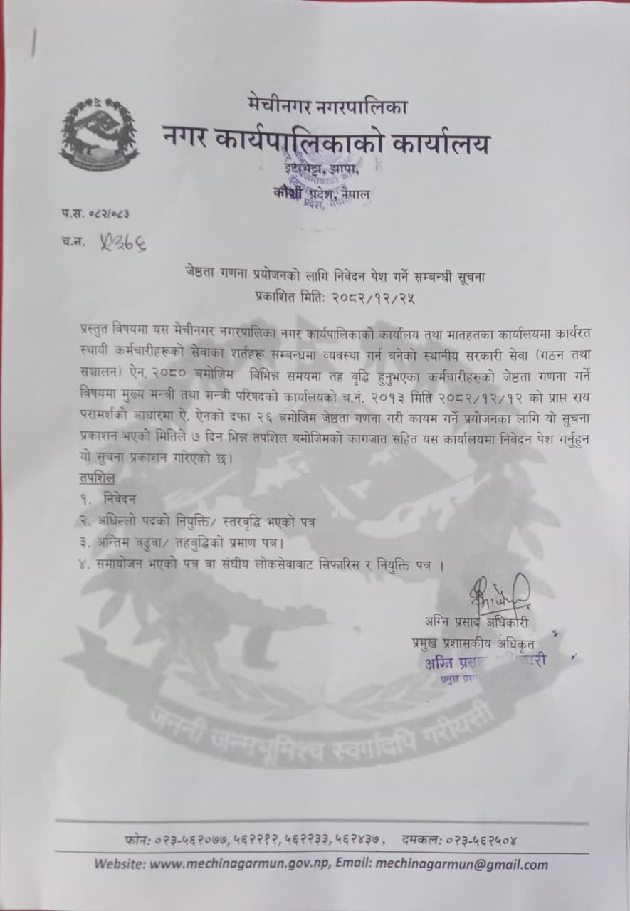 कर्मचारी आन्तरिक सरुवा/हेरफेर सम्बन्धि पत्रहरु