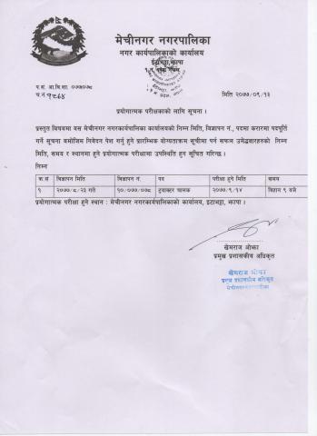 बिज्ञापन नम्बर १०/०७७/०७८, ट्रयाक्टर चालक पदमा प्राम्भिक योग्यताक्रम सूचीमा पर्न सफल उम्मेदवारहरुलाई प्रयोगात्मक परिक्षामा उपस्थित हुने सूचना | मिति :२०७७/०९/१३