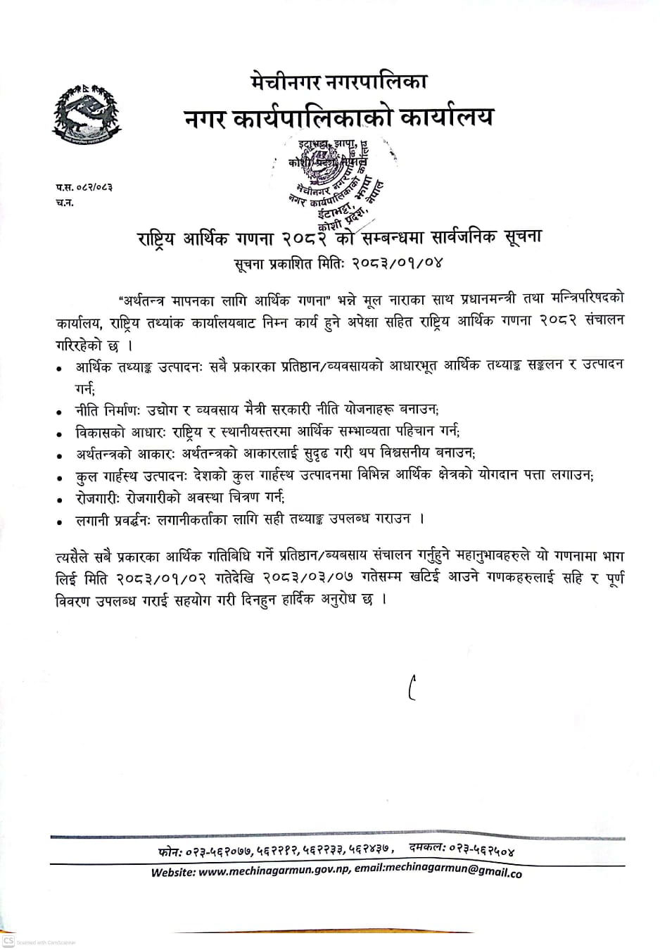 राष्ट्रिय आर्थिक गणना २०८२ सम्बन्धमा | मिति:२०८३/०१/०४