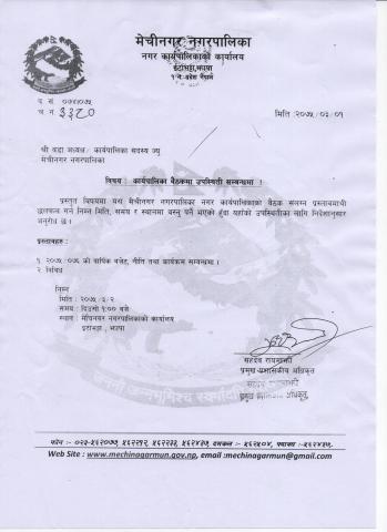 मिति: २०७५/३/१ :: कार्यपालिका बैठकमा उपस्थिति सम्बन्धमा